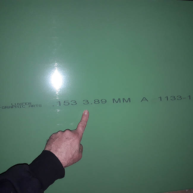 Por ej: el espesor de 1,5 mm puede ser usado para adaptarse a una base curva y ser fijado con cinta de pegado en caliente, mientras que aquellos espesores mas gruesos como el de 6,35 mm puede ser tomados con tornillos, resistir mayores temperaturas y soportar grandes cantidades de repeticiones en ensamblaje.